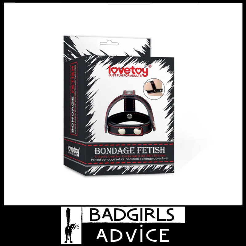 – Soft Genuine leather cock ring with T-style ball splitter for intermediate cock and ball play