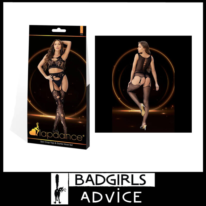 LAPDANCE 2pc Crop Top & Garter Hose Set