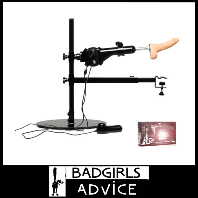 Adjust the angle of the machine up to enjoy unlimited positions. The machine moves up and down the length of the stand for your ideal height and can be angled to hit just the right spot to please you, no matter what position you’re in! Use the multi-speed dial to play with various thrusting speeds of up to 195 RPM! The large, round, heavy-duty base has suction-cups to keep it in place and increase stability at all thrusting speeds. This machine was designed to mount to the Obedience Extreme Sex Bench (AF514) for non-stop self-pleasure or for screwing your partner while you enjoy the show! The mounting arm adjusts in length and height to accommodate other sex furniture, including cages, swings, household chairs, benches and more.
